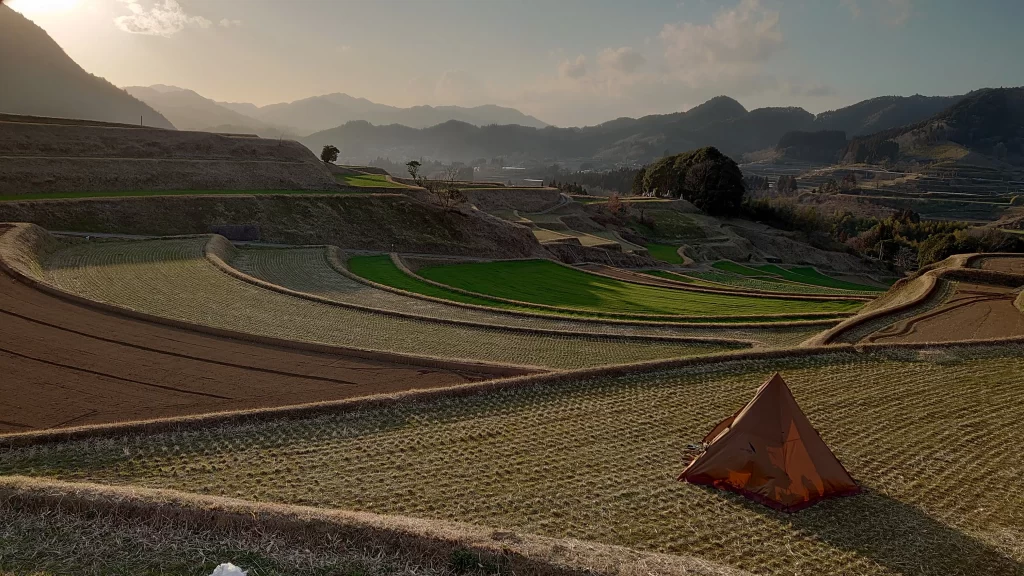 棚田キャンプで実際にキャンプをしたり焚き火をする田んぼは、生産者さんが代々守り続けてきた田んぼです。その田んぼで米作りを行うのは地元生産者の福原良治さん(以下、良治さん)。棚田キャンプの絶景は一筋縄では出来上がりません。今回は「この地で農業を極める男」こと福原良治さんをご紹介します。この棚田でどんな歴史や思いが繋がれてきたのか、お話をお聞きしました。