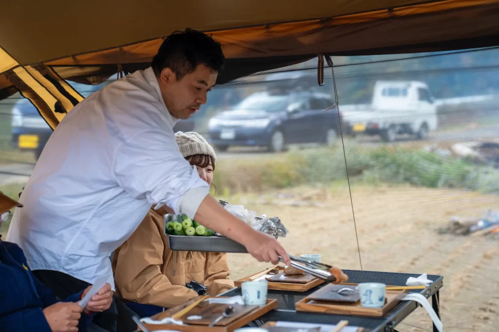 高千穂の食を知り尽くしたシェフが棚田で調理をし、