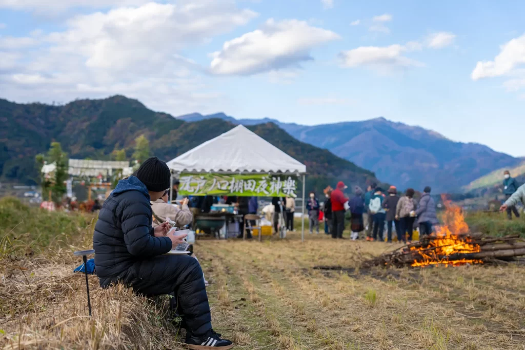 約3時間14時30分〜 会場入口にて受付・入場15時00分〜 棚田夜神楽 開始18時00分  棚田夜神楽 終了※開始時間は季節により多少変動します。